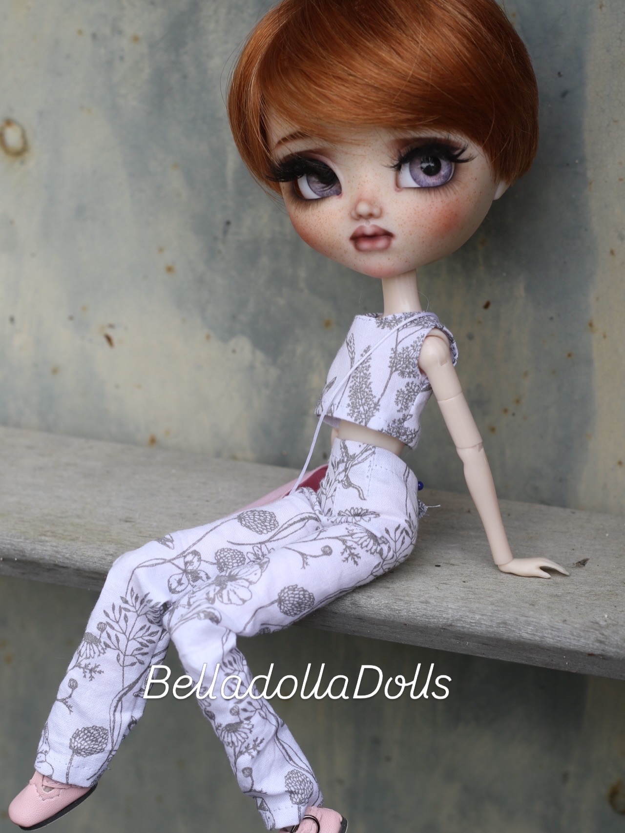 The doll will be delivered with the handmade outfit and wig (Monique) worn in the photos.
